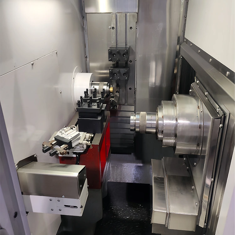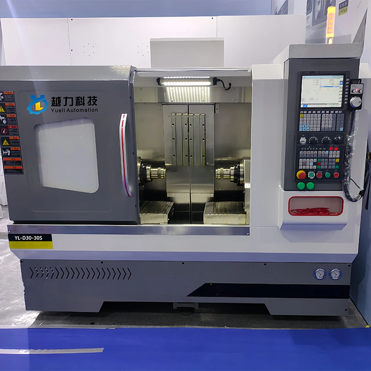 Die CNC-Horizontal-Doppelkopf-Drehmaschine von Yueli ist so konstruiert, dass sie den modernen Fertigungsanforderungen gerecht wird. Diese Drehmaschine wurde mit international fortschrittlichen Technologien und lokalen Innovationen entwickelt und bietet hohe Präzision, Hochgeschwindigkeitsleistung und außergewöhnliche Steifigkeit. Sein ergonomischer Aufbau und sein ästhetisches Design erhöhen den Bedienerkomfort, während integrierte mechanische, elektrische und hydraulische Systeme die Wartung vereinfachen und die Effizienz steigern. Perfekt für in China ansässige Fabriken und globale Zulieferer, die nach zuverlässigen Bearbeitungslösungen suchen.