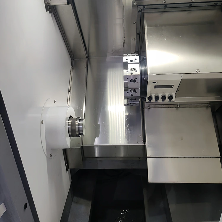 ● Servoangetriebene Achsen: Zweikanalige X-, Z- und A-Achsen-Servomotoren sind direkt mit Präzisions-Kugelumlaufspindeln verbunden und reduzieren so die Torsionsverformung bei schnellen oder schweren Schnitten.